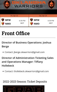 In a screenshot provided to Tend The Farm, former Oklahoma City Blazers and Valencia Flyers head coach Josh Berge will reportedly be joining the Oklahoma Warriors staff as their Director of Business Operations.